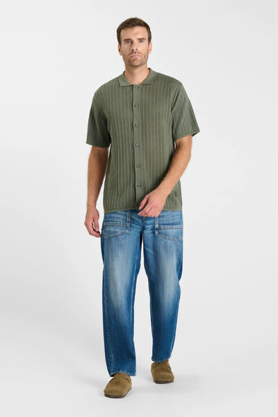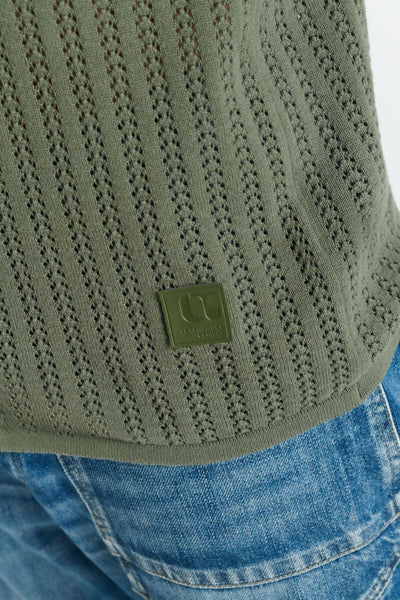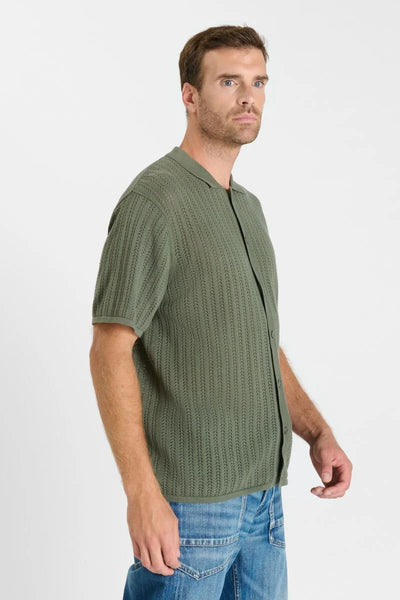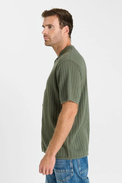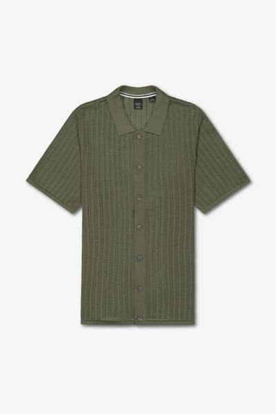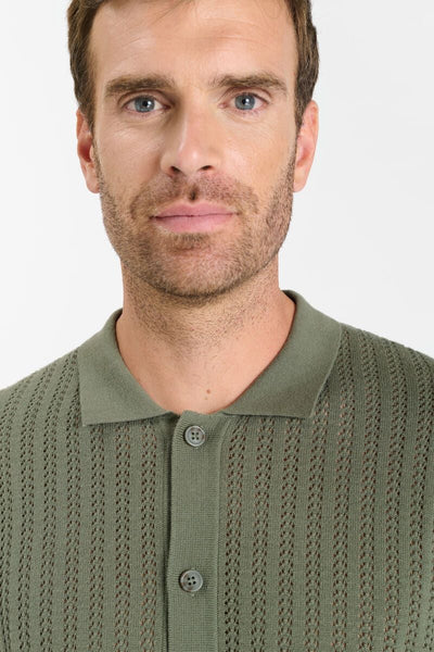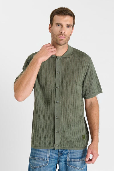 Camisa de manga corta confeccionada en algodón con tejido de punto calado, que aporta ligereza y transpirabilidad. Su corte recto permite un ajuste cómodo y natural.