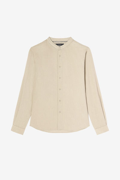 Camisa confeccionada en mezcla de lino y algodón, pensada para ofrecer frescura y comodidad. El cuello mao aporta un estilo limpio y sencillo, mientras que el corte recto permite llevarla con naturalidad en el día a día.