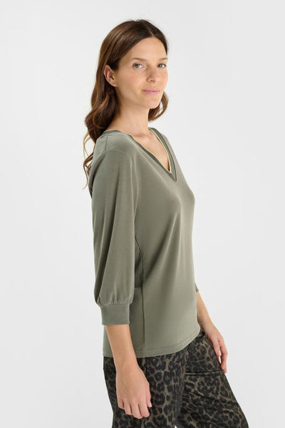 • Mangas 3/4 con bordes acanalados para un acabado elegante.