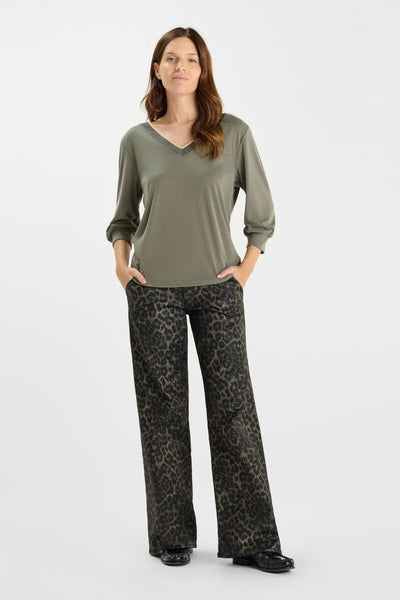 • Escote en V que estiliza el cuello y aporta feminidad.