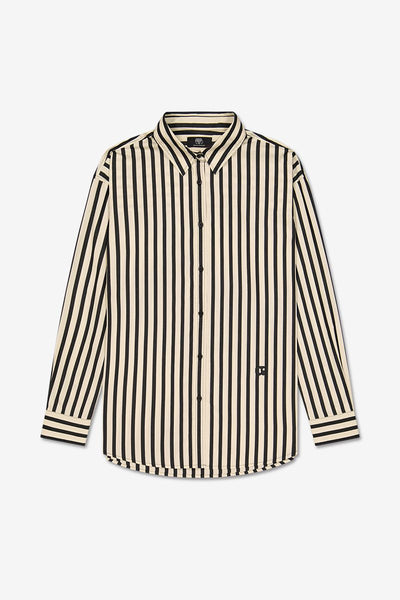 Camisa holgada de rayas con bordado de monograma, ideal para un look casual y moderno.